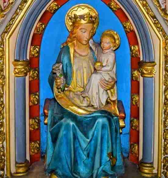 A memorial brass, under the modern altar of Sicilian marble, records that the first two priests of this church, Richard and Joseph North are buried here. Their remains both lie underneath. Apparently, Richard’s coffin was reinterred to be alongside his brother. The floor is of encaustic Minton tiles similar to those designed by Pugin for the Palace of Westminster.